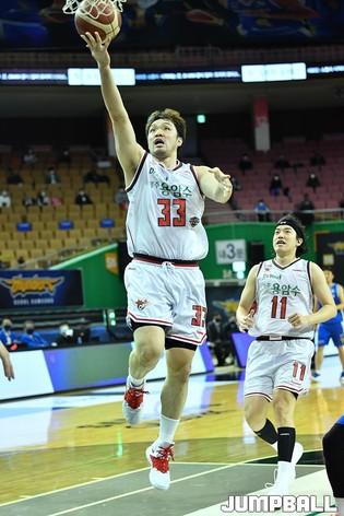 [점프볼=잠실/유용우 기자] 28일 잠실실내체육관에서 열린 2020-2021 현대모비스 프로농구 서울 삼성과 고양 오리온의 경기, 삼성 김진영이 레이업 득점을 올리고 있다.