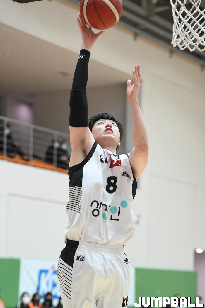 26일 경기도 이천에 위치한 LG 챔피언스파크에서 열린 2021-2022 KBL D리그 서울 SK와 수원 KT의 경기, KT 최성모가 골밑슛을 시도하고 있다.