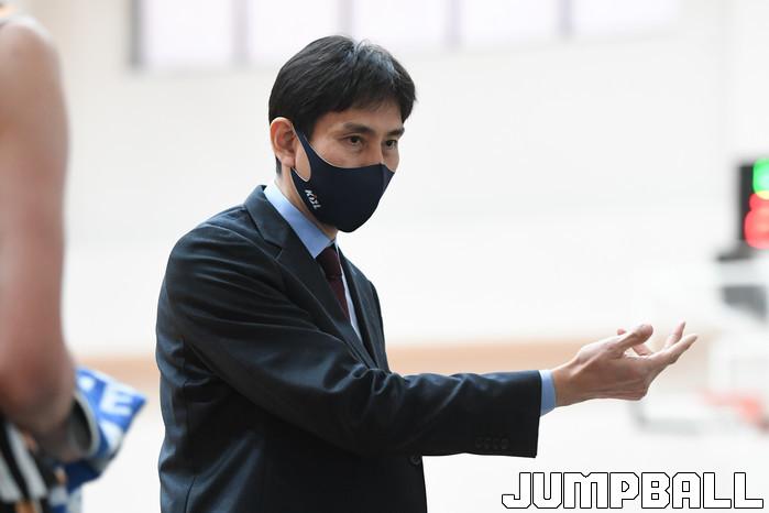 17일 이천에 위치한 LG 챔피언스파크에서 열린 2021-2022 KBL D리그 상무와 원주 DB의 경기, 상무 장창곤 감독이 작전 지시를 하고 있다.