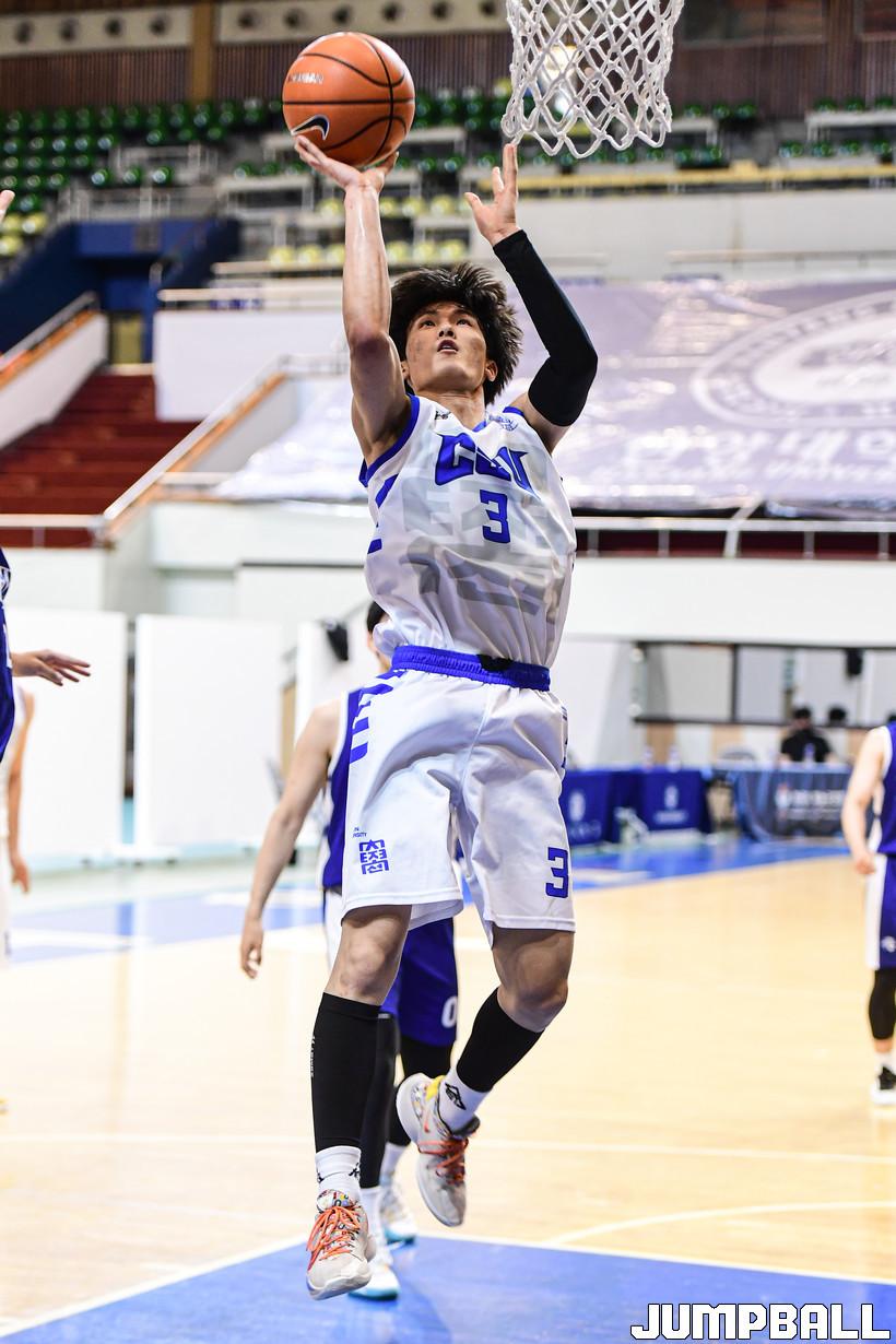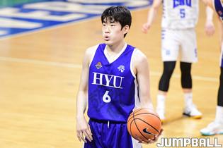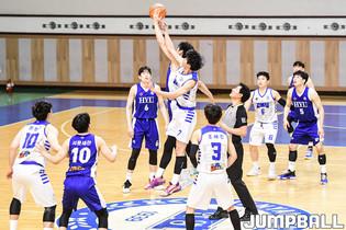 11일 한양대 서울캠퍼스 체육관에서 열린 2022 KUSF 대학농구 U-리그 한양대와 조선대의 경기, 조선대 조해민이 골밑에서 슛을 시도하고 있다.