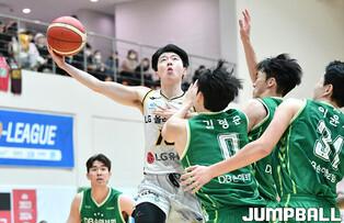 11일 이천 LG챔피언스파크에서 열린 2023-2024 KBL D-리그 DB와 LG의 경기, LG 이승우가 상대 수비를 뚫고 슛을 시도하고 있다.