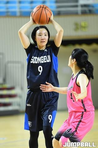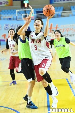 [점프볼=김천/유용우 기자] 10일 김천실내체육관에서 열린 제40회 어머니농구대회 대전과 숙명의 경기, 숙명 신혜인이 골밑 공격을 시도하고 있다.