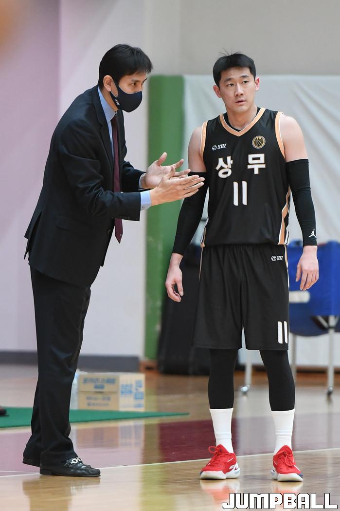 17일 이천에 위치한 LG 챔피언스파크에서 열린 2021-2022 KBL D리그 상무와 원주 DB의 경기, 상무가 DB에 88-75로 승리했다. 상무와 DB 경기 화보.