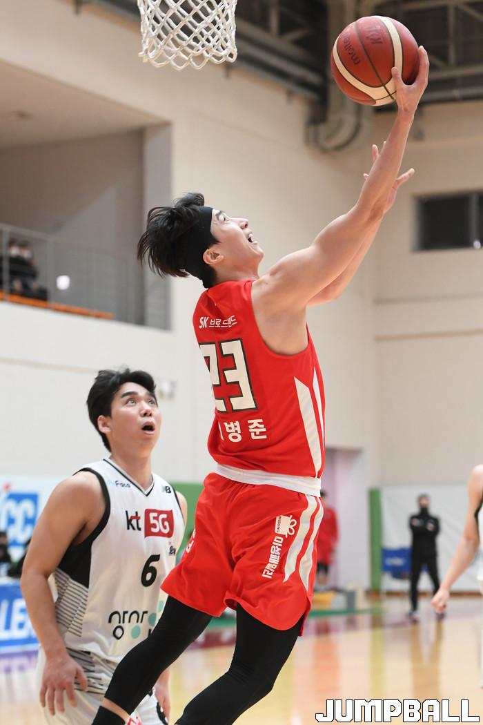 26일 경기도 이천에 위치한 LG 챔피언스파크에서 열린 2021-2022 KBL D리그 서울 SK와 수원 KT의 경기, SK가 KT에 105-98로 승리했다. SK와 KT 경기 화보.