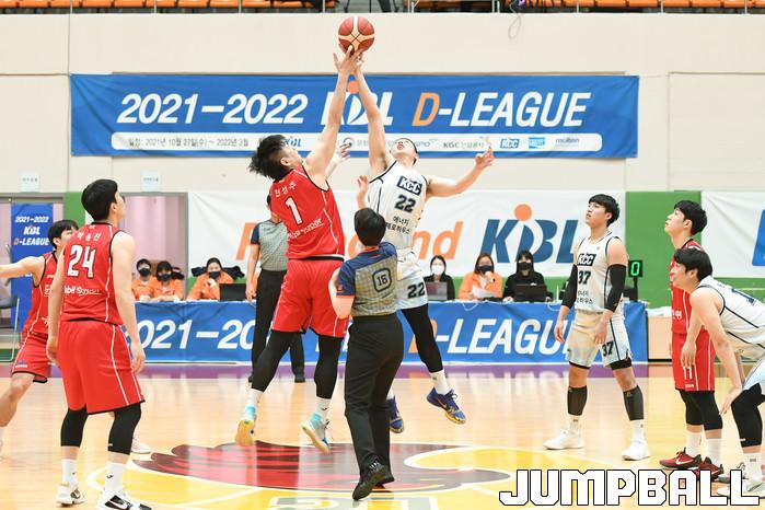 26일 경기도 이천에 위치한 LG 챔피언스파크에서 열린 2021-2022 KBL D리그 대구 한국가스공사와 전주 KCC의 경기, 점프볼로 경기가 시작되었다.