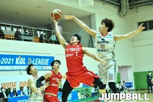 [점프볼=이천/유용우 기자] 16일 이천 LG 챔피언스파크에서 열린 2020-2021 KBL D-리그 2차 대회 SK와 전자랜드의 챔피언 결정전, SK 송창무가 공격하고 있다.