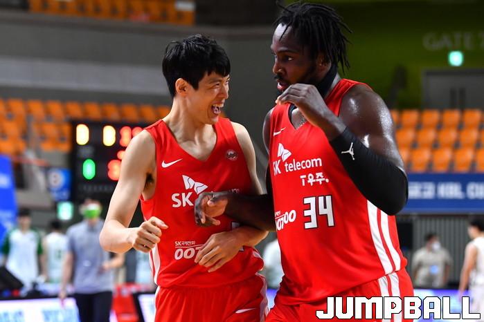 18일 경상북도 상주시 상주실내체육관에서 열린 2021 MG새마을금고 KBL컵 대회 서울 SK와 원주 DB의 결승 경기에서 SK가 90-82로 승리를 거둬 KBL컵 우승을 차지했다.