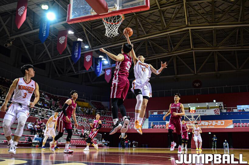 2일 경희대 국제캠퍼스 선승관에서 열린 2022 KUSF 대학농구 U-리그 경희대와 동국대의 플레이오프 8강전 경기, 동국대 이대균이 레이업슛을 시도하고 있다.