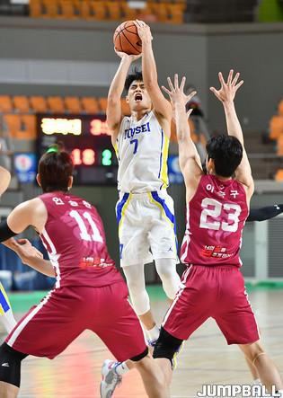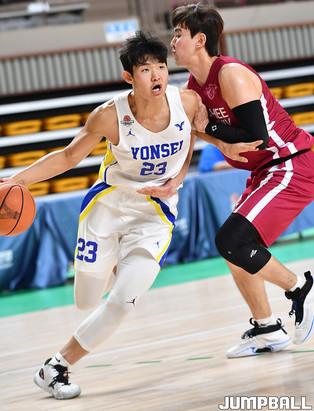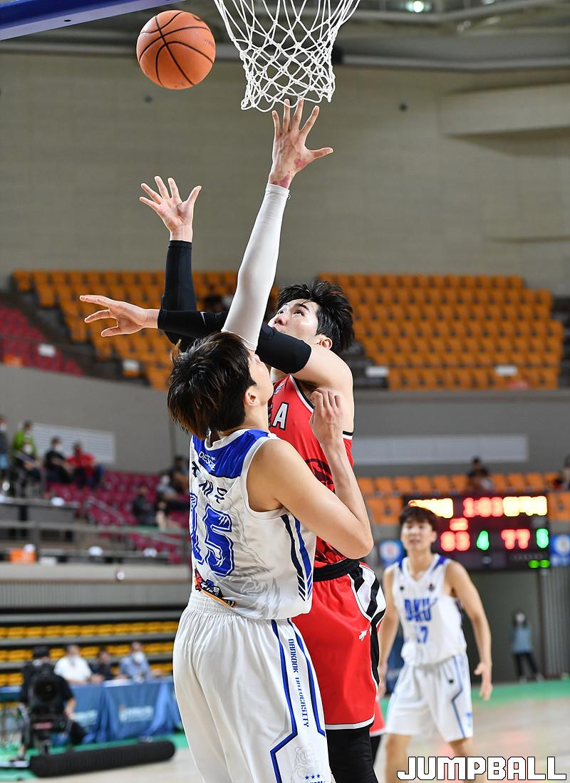 20일 경상북도 상주실내체육관에서 열린 제38회 MBC배 전국대학농구 상주대회에 고려대와 단국대의 준결승전으로 고려대 문정현이 골밑에서 상대수비을 달고 슛을 시도하고 있다.
