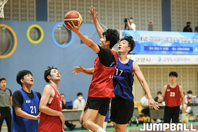 13일 고양보조체육관에서 2022 KBL 신인선수 드래프트 일반인 실기테스트, 레드팀 박성현이 레이업슛을 시도하고 있다.