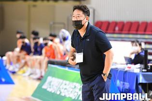 20일 김천실내체육관에서 열린 2021 연맹회장기 전국남녀중고농구 김천대회 남고부 홍대부고와 양정고의 경기, 양정고 표명일 코치가 선수들을 독려하고 있다.