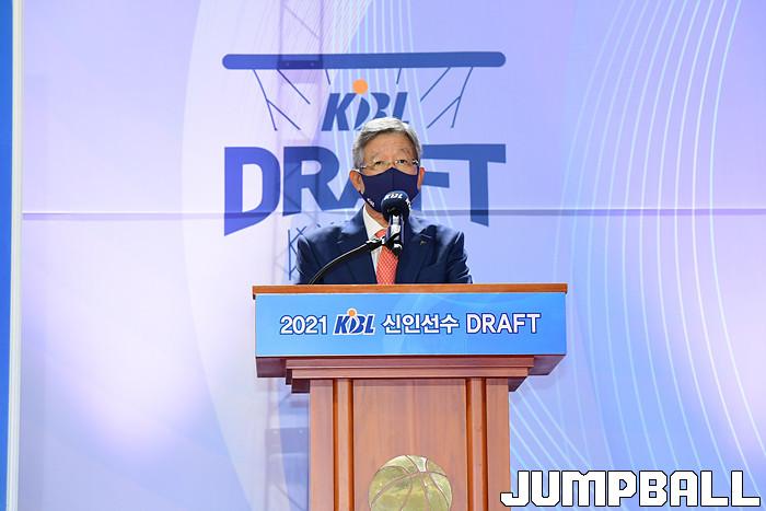 28일 잠실학생체육관에서 2021 KBL 신인선수 드래프트가 열렸다. 선수 지명 전 KBL 김희옥 초재가 인사말을 전하고 있다.