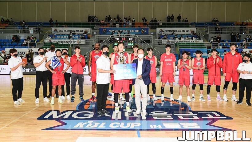8일 통영체육관에서 열린 2022 MG새마을금고 울산현대모비스와 수원 KT의 결승전 경기, KT가 현대모비스에 74-72로 승리하며 컵대회 우승을 차지하였다. 울산 현대모비스가 준우승 시상을 하고 있다.