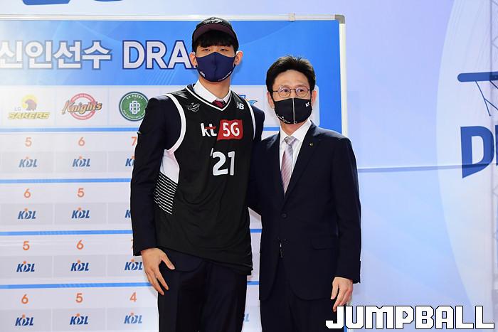 28일 잠실학생체육관에서 2021 KBL 신인선수 드래프트가 열렸다. KT 서동철 감독은 1라운드 2순위로 하윤기를 지명했다.