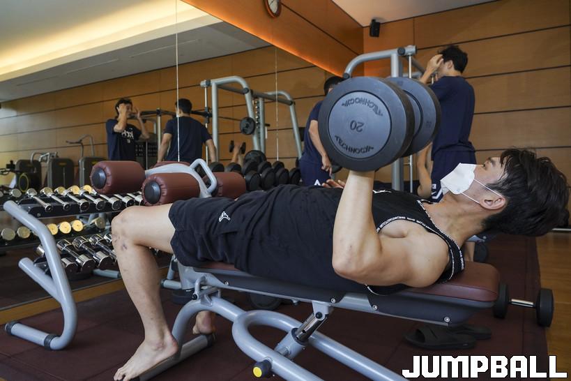 10일 인도네시아 자카르타 페이몬트 자카르타 호텔 4층에 위치한 웨이트장에서 남자 농구 국가대표팀 웨이트 훈련을 진행했다. 대표팀 주장 이대성이 아령을 들면서 웨이트 훈련을 진행하고 있다.