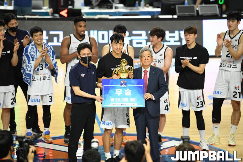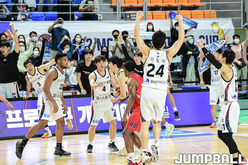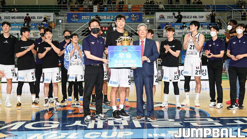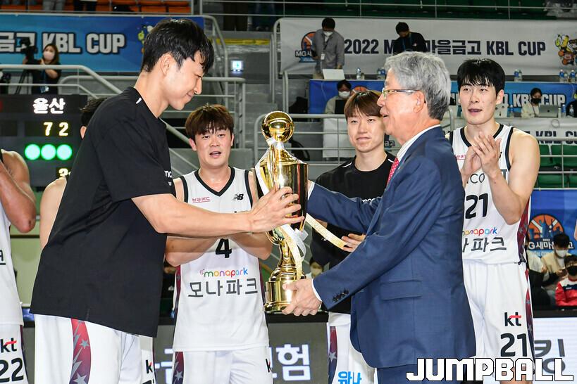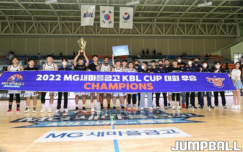 8일 통영체육관에서 열린 2022 MG새마을금고 울산현대모비스와 수원 KT의 결승전 경기, KT가 현대모비스에 74-72로 승리하며 컵대회 우승컵을 들어올렸다.