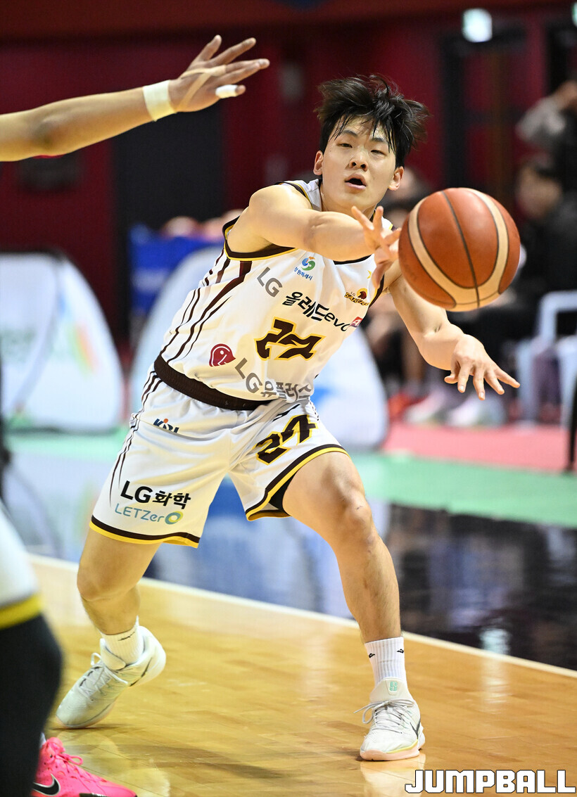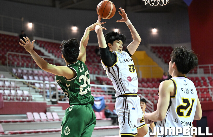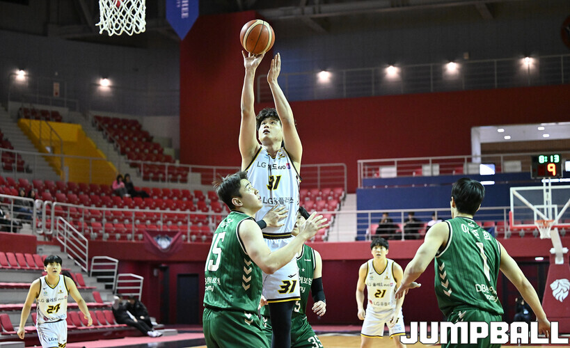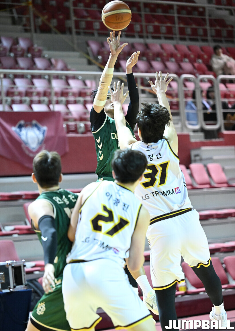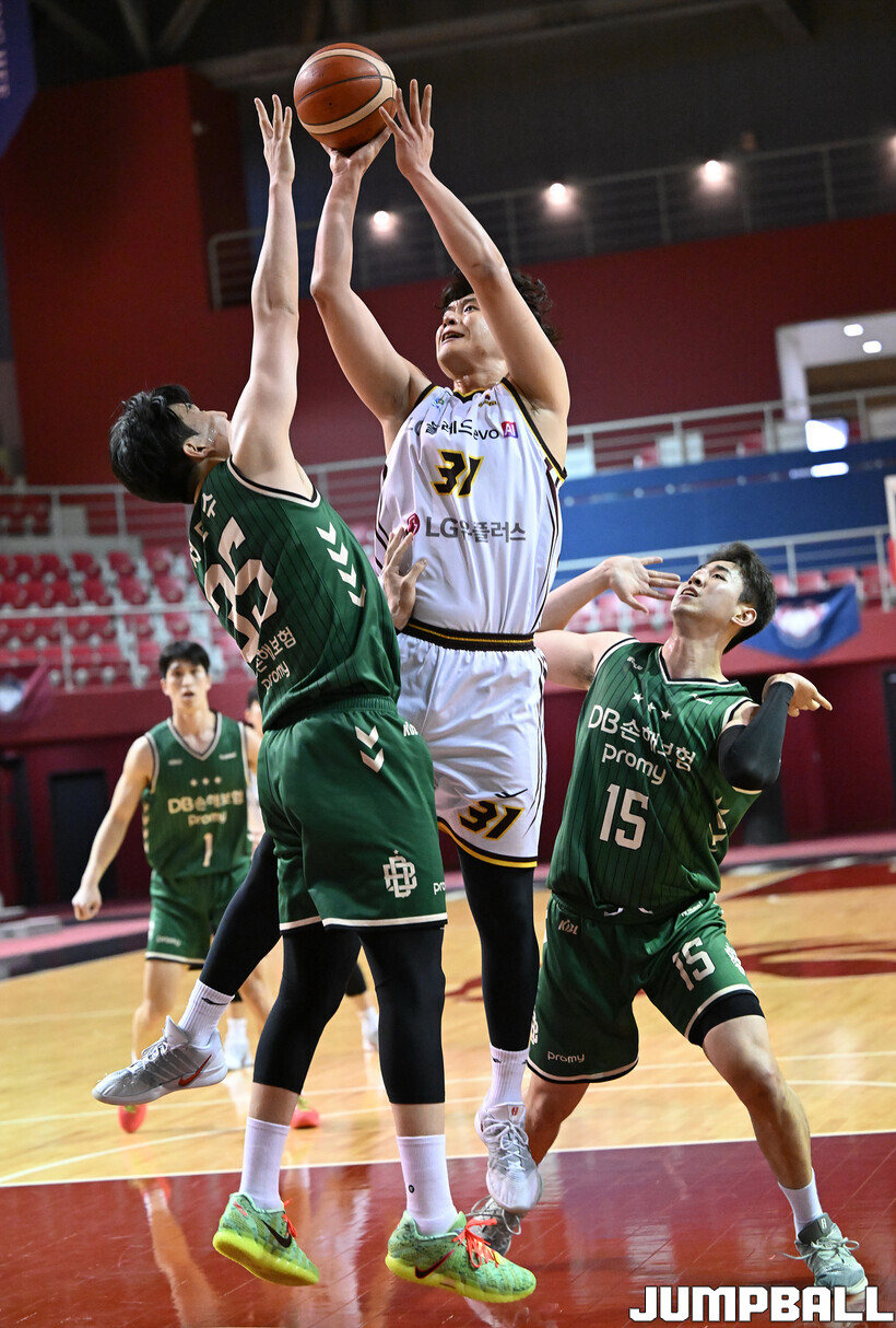 [점프볼=용인/문복주 기자] 창원 LG는 3일 경희대 국제캠퍼스 선승관에서 열린 2025-2026 KBL D리그 원주 DB와의 경기에서 접전 끝에 65-63으로 승리했다.