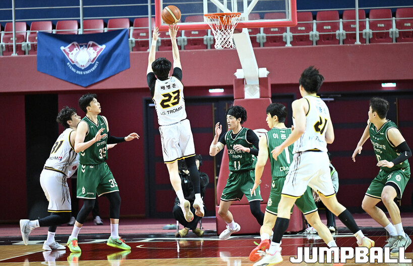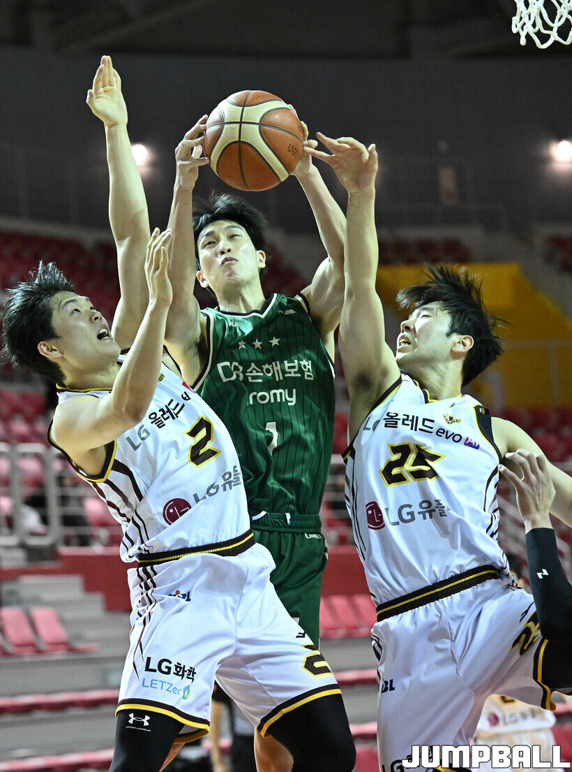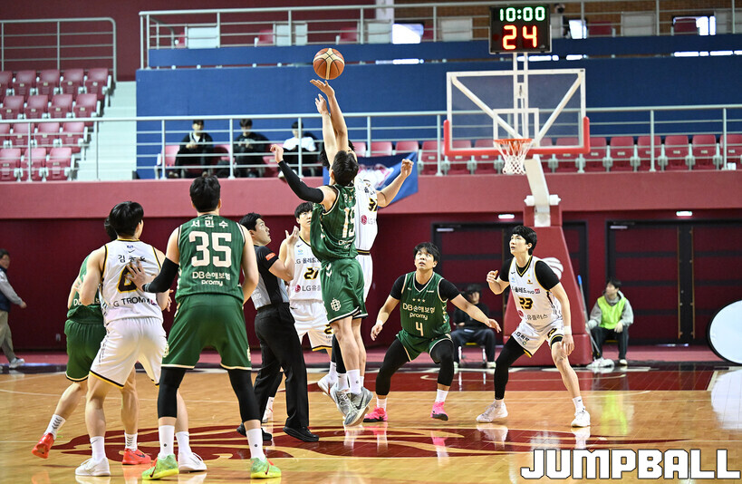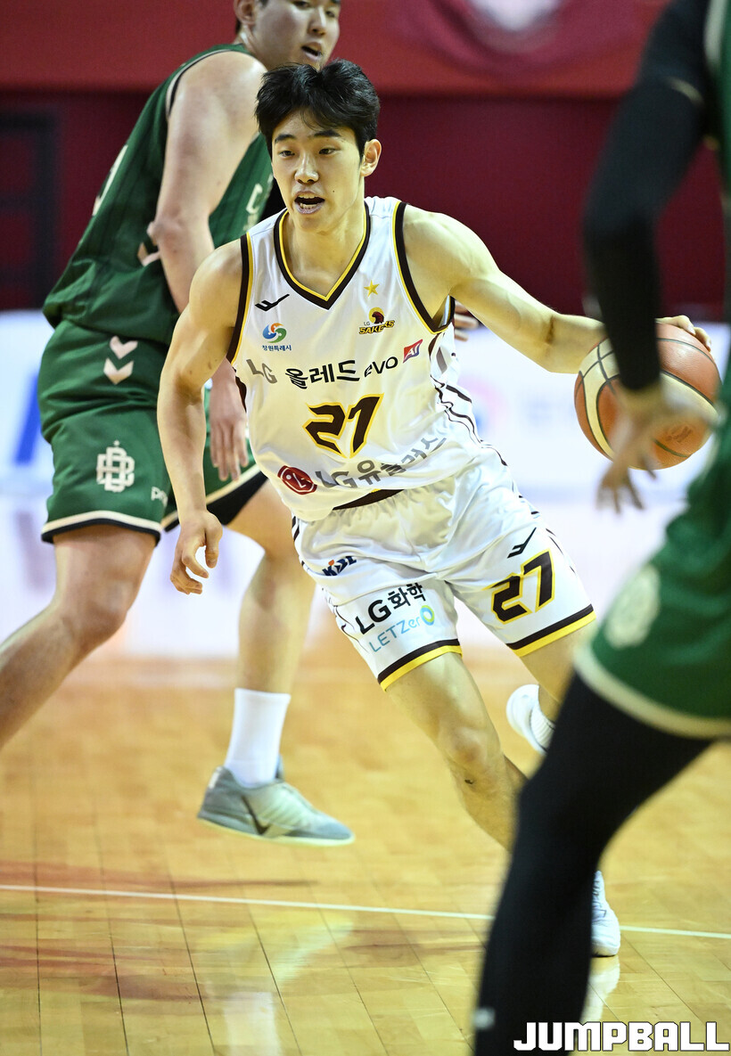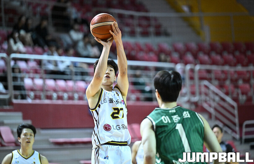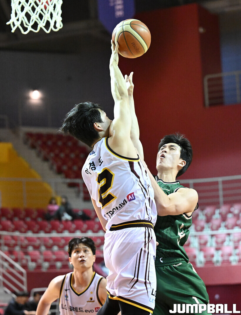[점프볼=용인/문복주 기자] 창원 LG는 3일 경희대 국제캠퍼스 선승관에서 열린 2025-2026 KBL D리그 원주 DB와의 경기에서 접전 끝에 65-63으로 승리했다.