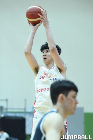 13일 경기도 이천에 위치한 LG 챔피언스파크에서 열린 2021-2022 KBL D리그 서울 SK와 전주 KCC 경기, SK 김승원이 골밑에서 슛을 시도하고 있다.