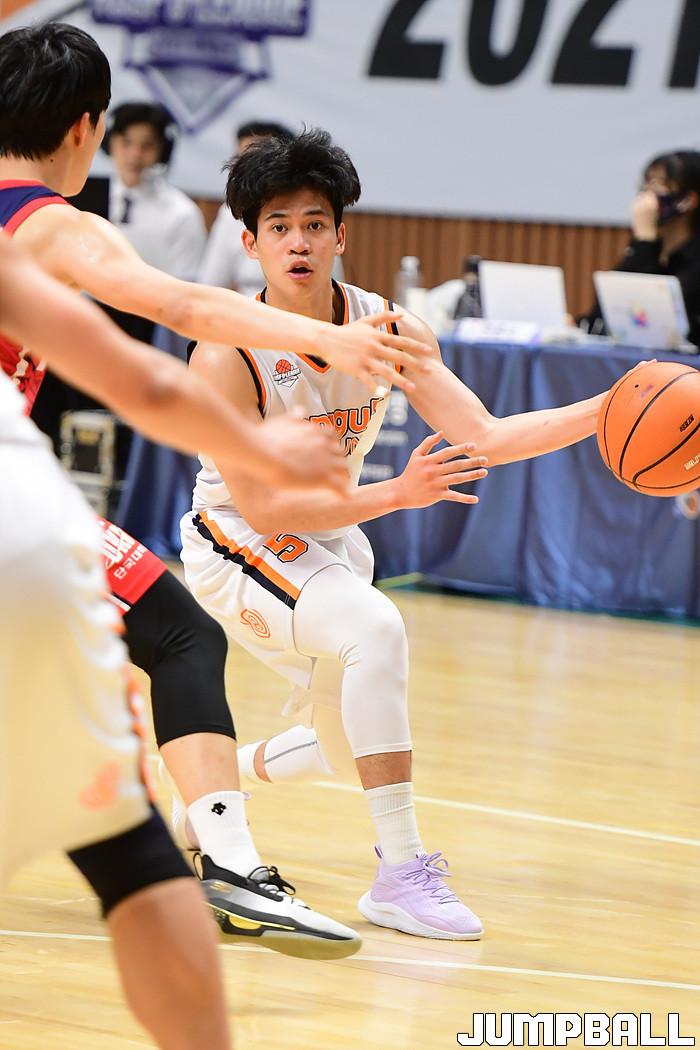 [점프볼=수원/박상혁 기자] 3일 서수원칠보체육관에서 열린 2021 KUSF 대학농구 U리그 단국대와 동국대의 4강 플레이오프 경기, 동국대 박승재가 인사이드로 패스를 시도하고 있다.