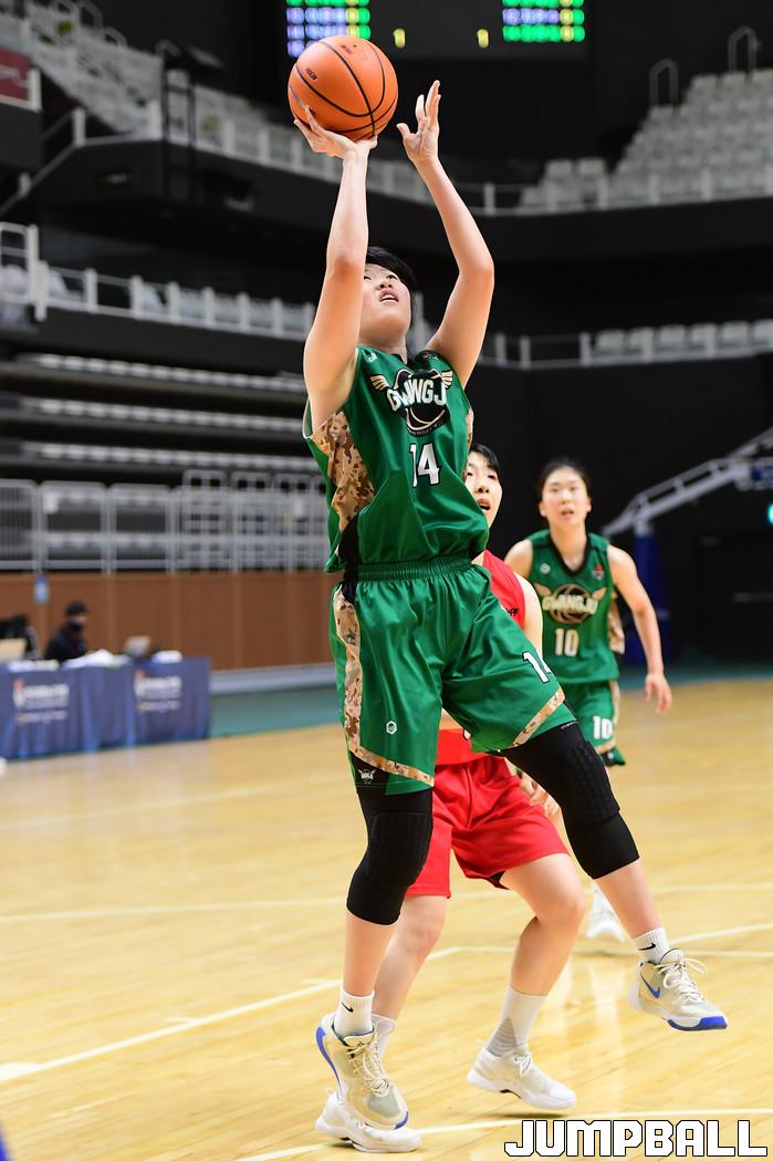 [점프볼=수원/박상혁 기자] 8일 서수원칠보체육관에서 열린 2021 KUSF 대학농구 U리그 단국대와 광주대의 여자부 4강 경기, 광주대 김원지가 골밑슛을 시도하고 있다.