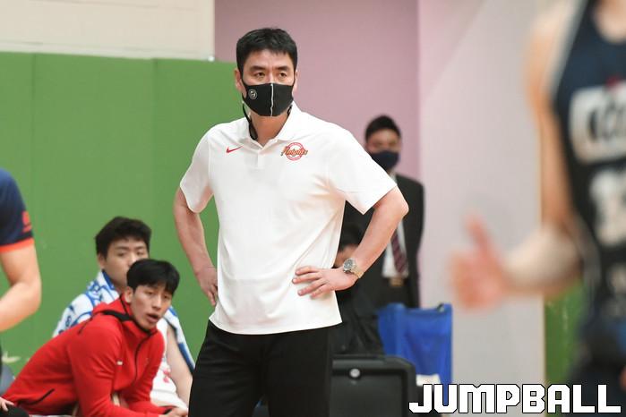 13일 경기도 이천에 위치한 LG 챔피언스파크에서 열린 2021-2022 KBL D리그 서울 SK와 전주 KCC 경기, SK 허남영 코치가 선수들의 플레이를 지켜보고 있다.