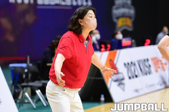 [점프볼=수원/박상혁 기자] 8일 서수원칠보체육관에서 열린 2021 KUSF 대학농구 U리그 단국대와 광주대의 여자부 4강 경기, 광주대 국선경 감독이 선수들에게 지시를 하고 있다.