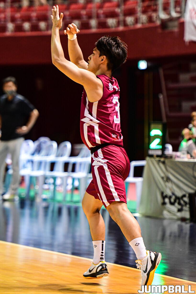 2일 경희대 국제캠퍼스 선승관에서 열린 2022 KUSF 대학농구 U-리그 경희대와 동국대의 플레이오프 8강전 경기, 경희대 황영찬이 3점슛을 성공시킨 후 세레머니를 하고 있다.