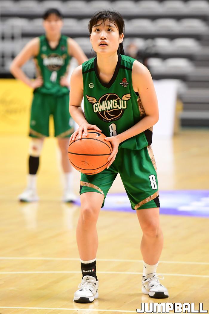 [점프볼=수원/박상혁 기자] 8일 서수원칠보체육관에서 열린 2021 KUSF 대학농구 U리그 단국대와 광주대의 여자부 4강 경기, 광주대 박새별이 자유투를 시도하고 있다.