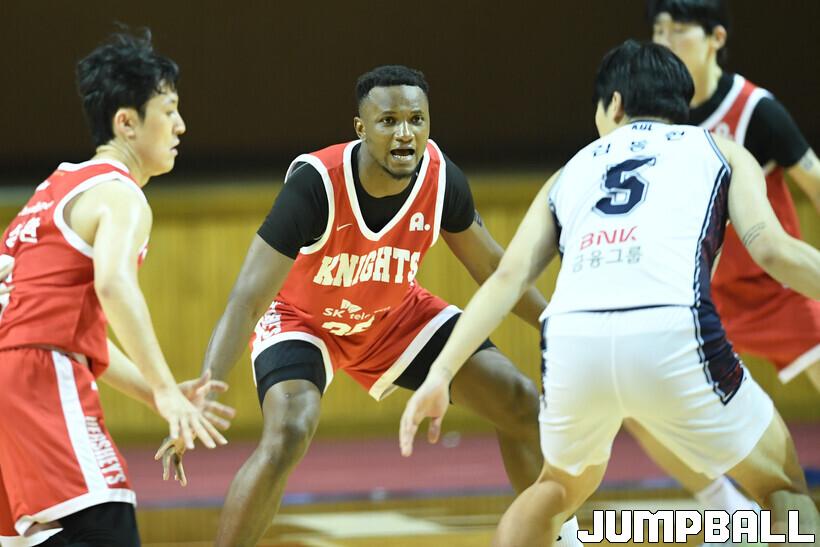 [점프볼=용인/유용우 기자] 24일 경희대 선승관 체육관에서 열린 2025-2026 KBL D리그 서울 SK와 부산 KCC의 경기, SK 신인 프레디가 수비를 펼치고 있다.