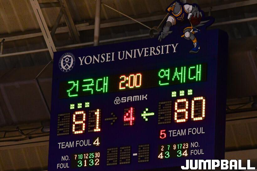 1일 연세대학교 신촌캠퍼스에서 열린 2022 KUSF 대학농구 U-리그 연세대와 건국대의 플레이오프 경기, 건국대가 연세대에 81-80으로 승리했다. 건국대와 연세대 경기 화보.