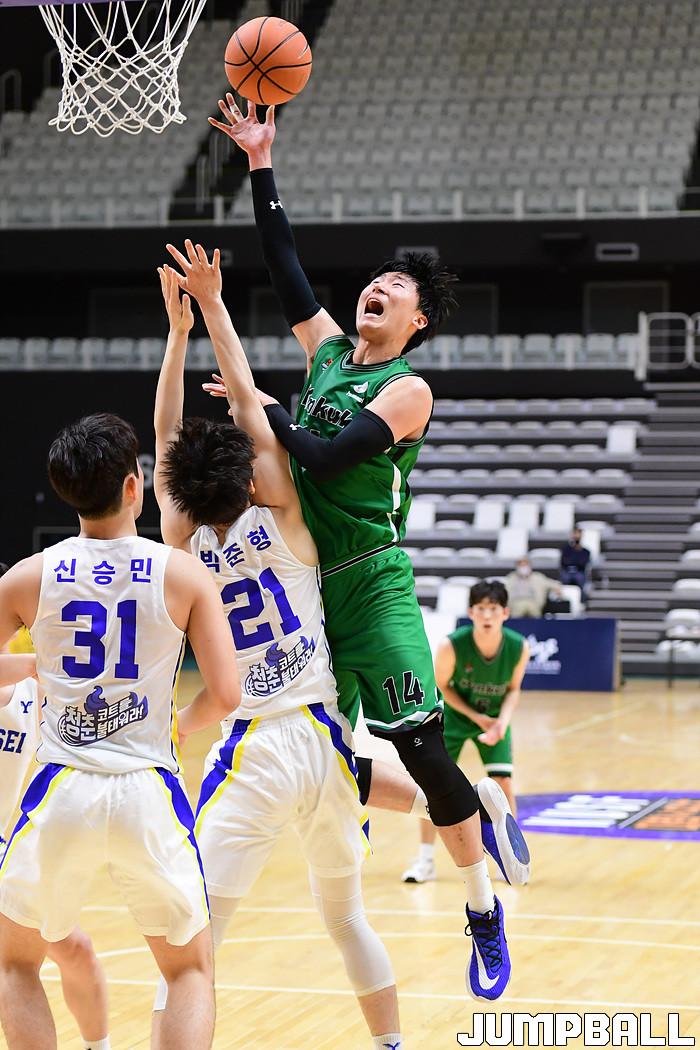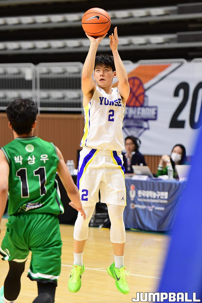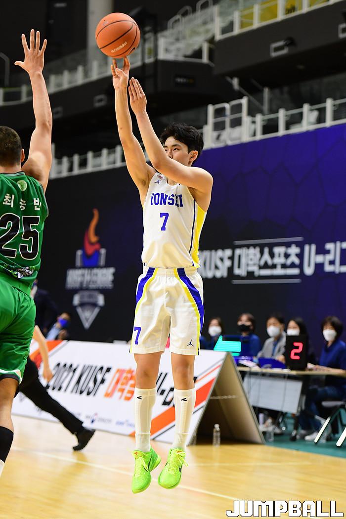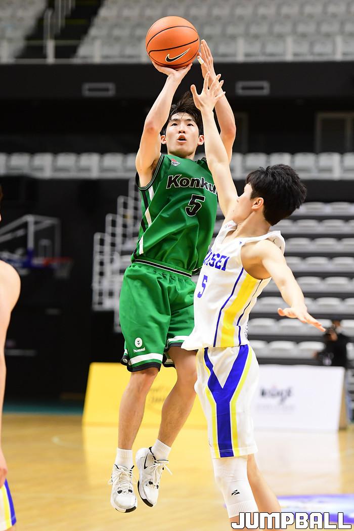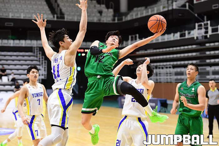 [점프볼=수원/박상혁 기자] 27일 서수원칠보체육관에서 열린 2021 KUSF 대학농구 U리그 연세대와 건국대의 경기, 연세대가 건국대에 98-82로 승리했다. 연세대와 건국대 경기 화보