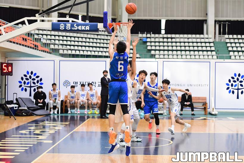 4일 명지대 체육관에서 열린 2022 KUSF 대학농구 U리그 명지대와 단국대의 경기, 명지대 박민재가 점프슛을 시도하고 있다.