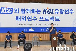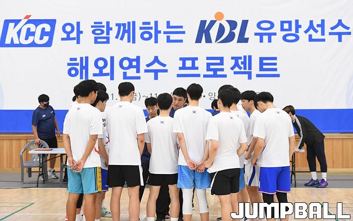 5일 강원도 양구에 위치한 양구청춘체육관에서 KCC와 함께하는 KBL 유망선수 해외연수 프로젝트 1일차 일정을 가졌다. 김상영 코치가 선수들에게 훈련 지시를 하고 있다.