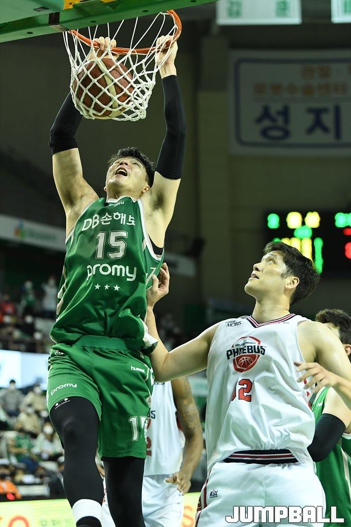 06일 원주종합체육관에서 열린 2021-2022 KGC인삼공사 정관장 프로농구 원주 DB와 울산 현대모비스의 경기, DB 김종규가 덩크를 성공하고 있다.