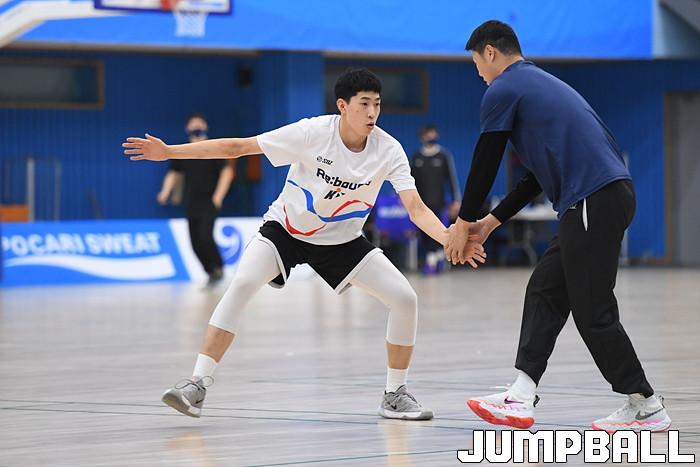 [JB포토] 조성민 코치의 지도아래 사이드 스텝 훈련하는 용산고 김승우