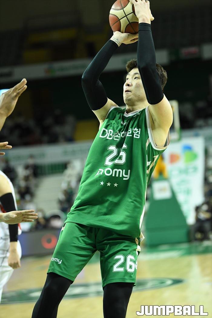06일 원주종합체육관에서 열린 2021-2022 KGC인삼공사 정관장 프로농구 원주 DB와 울산 현대모비스의 경기, DB 강상재가 슛을 던지고 있다.