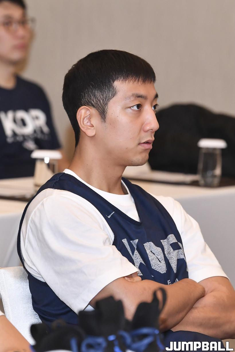 남자 농구 대표팀은 11일 인도네시아 자카르타 페이몬트 호텔 3층 회의실에서 12일 중국전을 대비해 비디오 미팅을 가졌다. 대표팀 허훈이 중국 선수 분석 영상을 바라보고 있다.