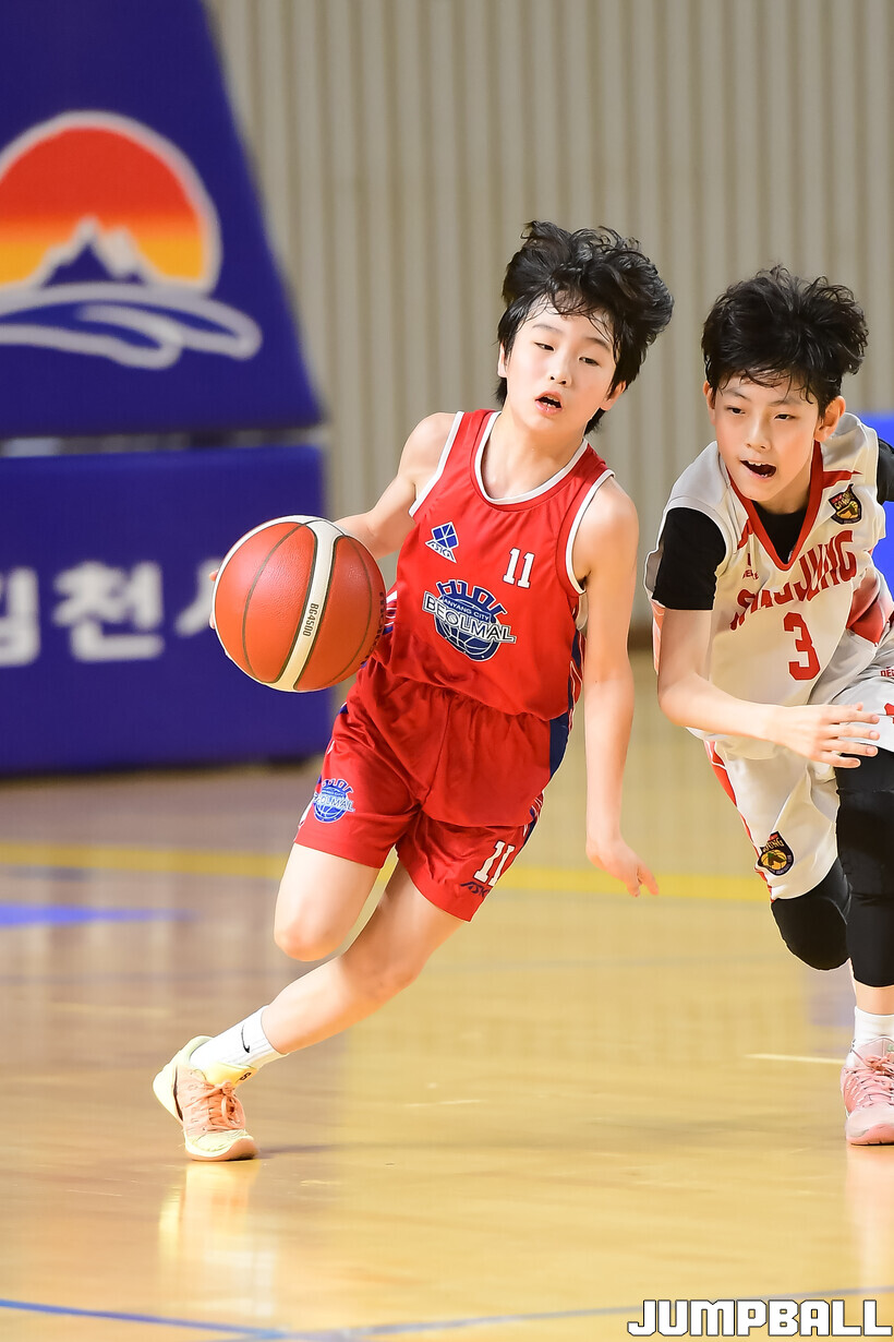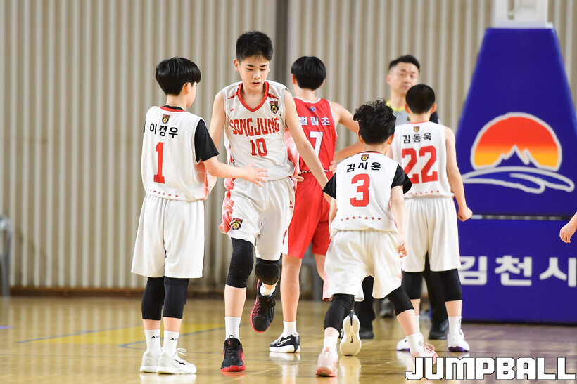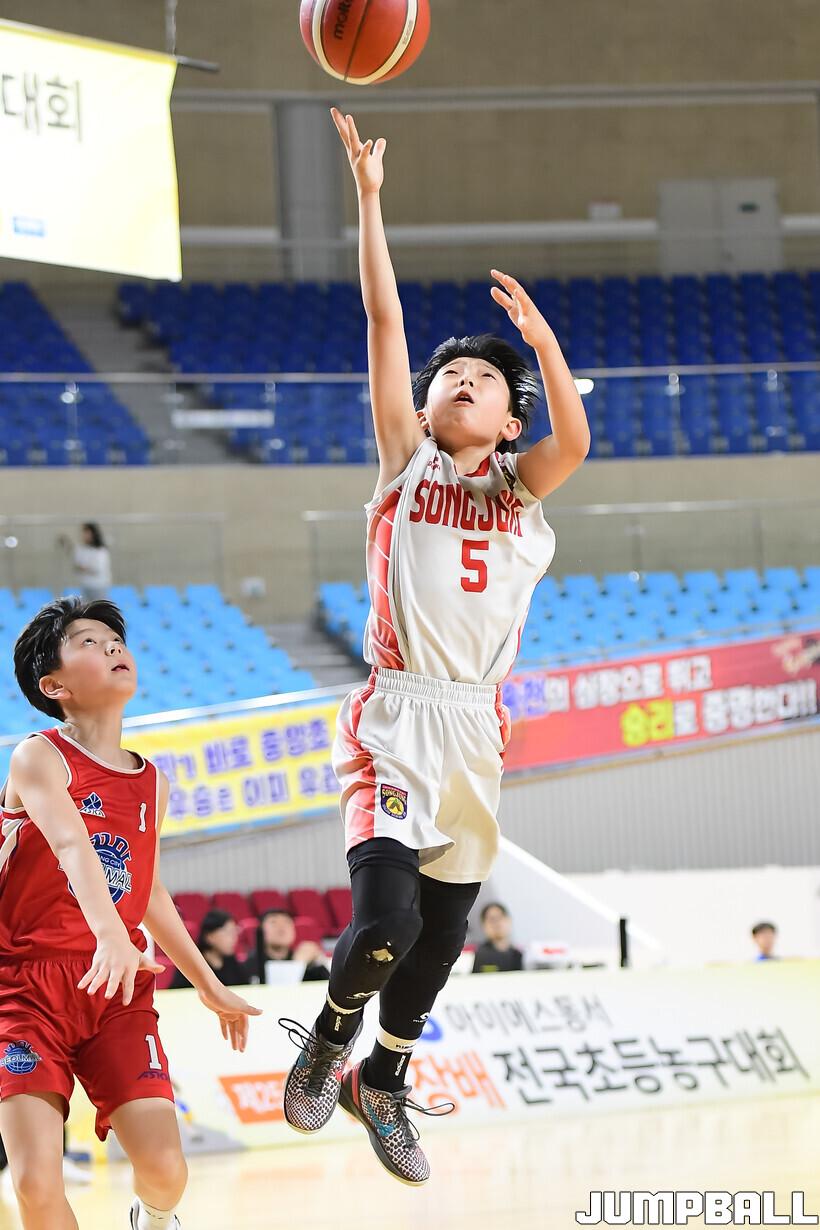 [점프볼=김천/박상혁 기자] 18일 김천체육관에서 열린 아이에스동서 제25회 협회장배 전국초등농구대회 벌말초와 송정초 남초부 결선 경기, 송정초가 벌말초에 45-44로 승리하며 8강에 진출했다.