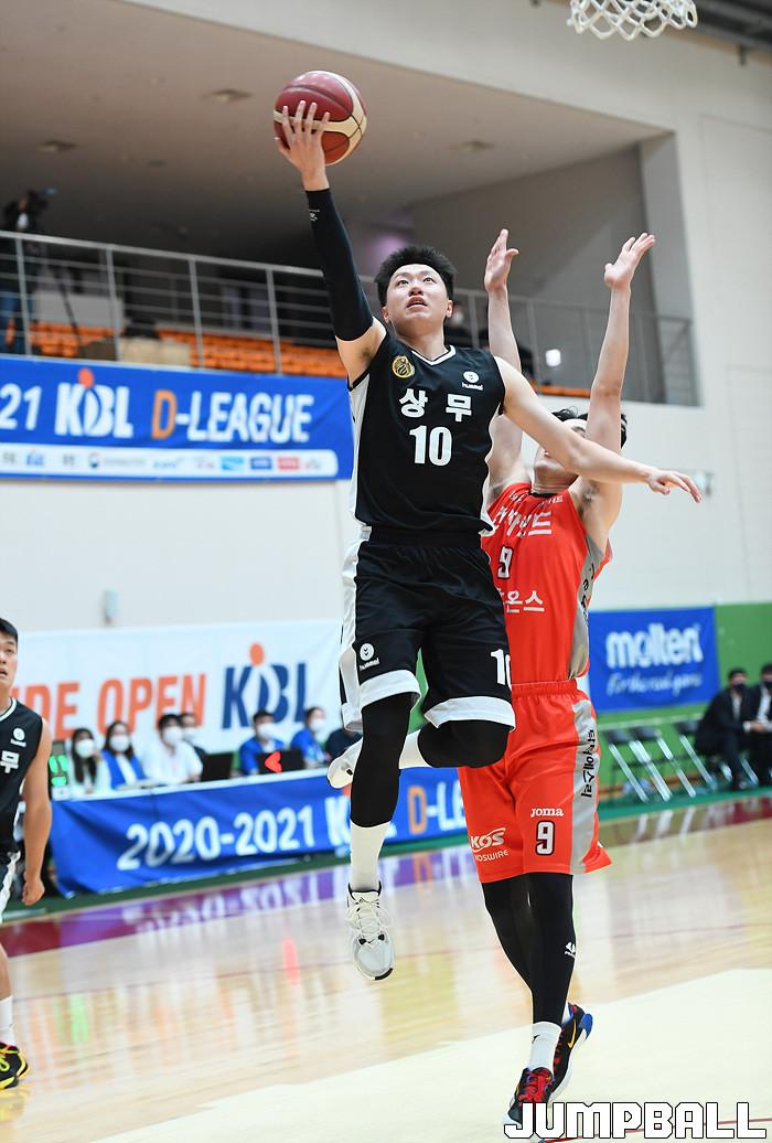 [점프볼=이천/문복주 기자] 상무는 17일 경기도 이천 LG챔피언스파크 체육관에서 열린 2020-2021 KBL D-리그 인천 전자랜드와의 맞대결에서 100-78로 승리했다. 2009년 2군리그 창설 이후 KBL 팀들과 경기를 치러왔던 상무는 이날 승리로 174연승 기록을 세웠다.