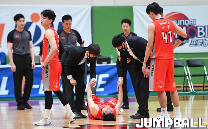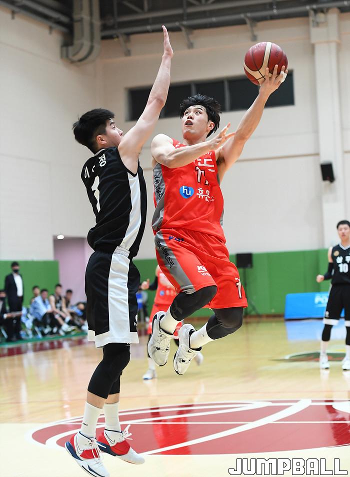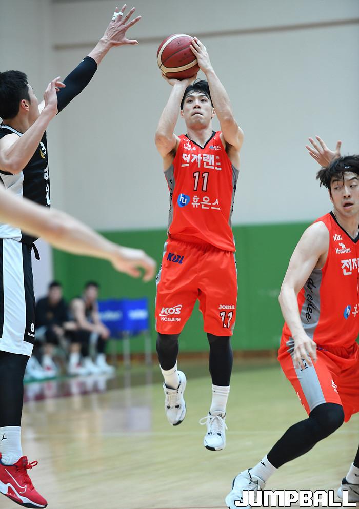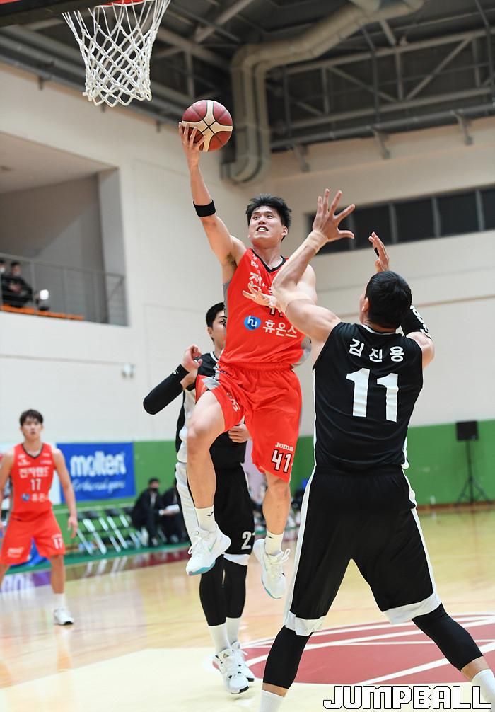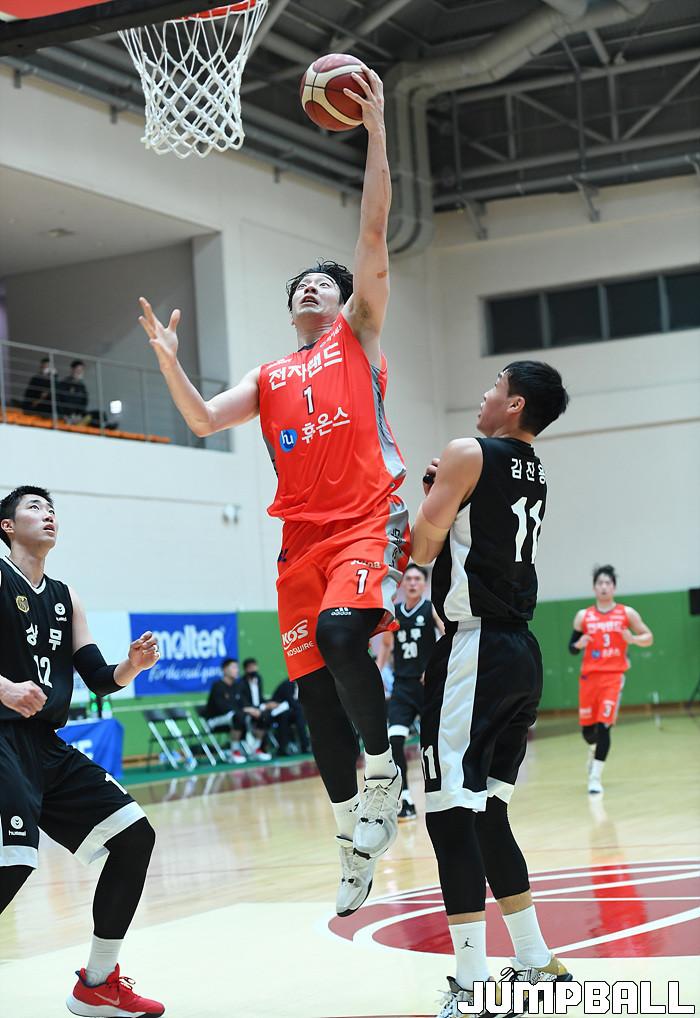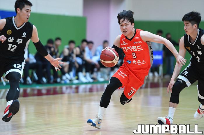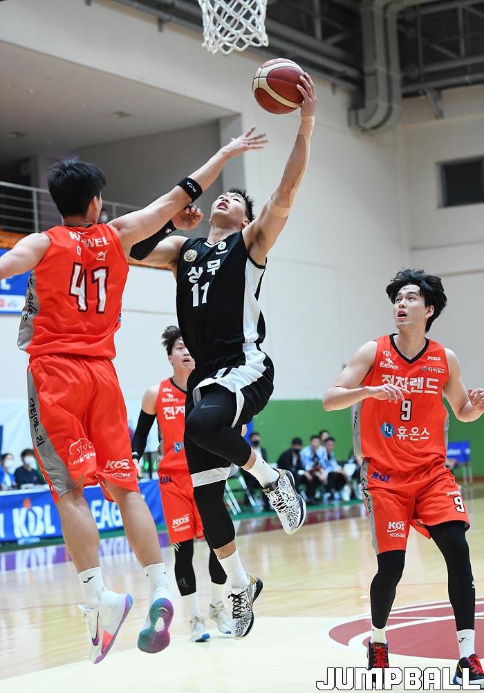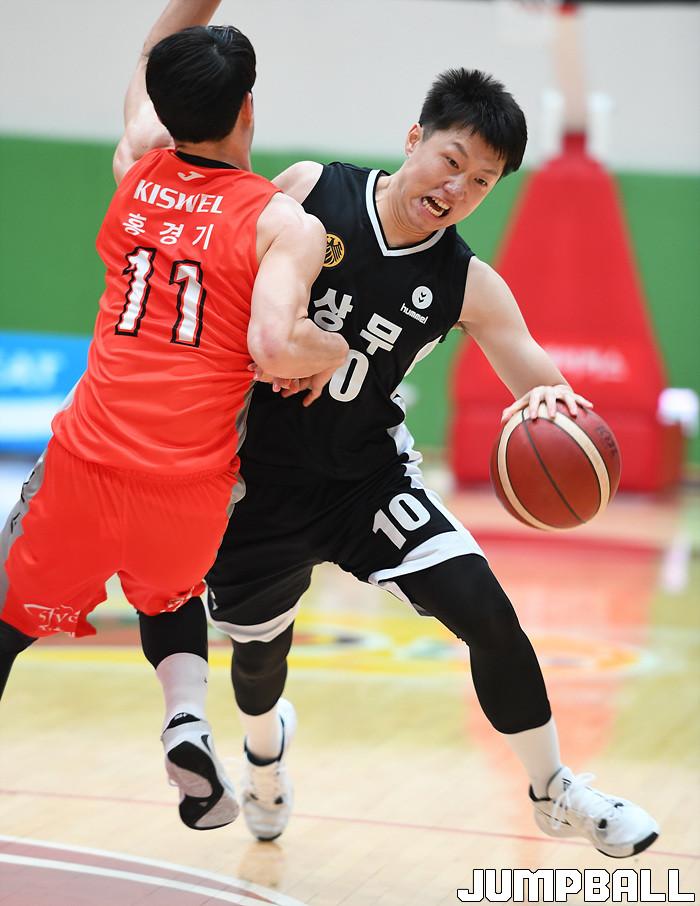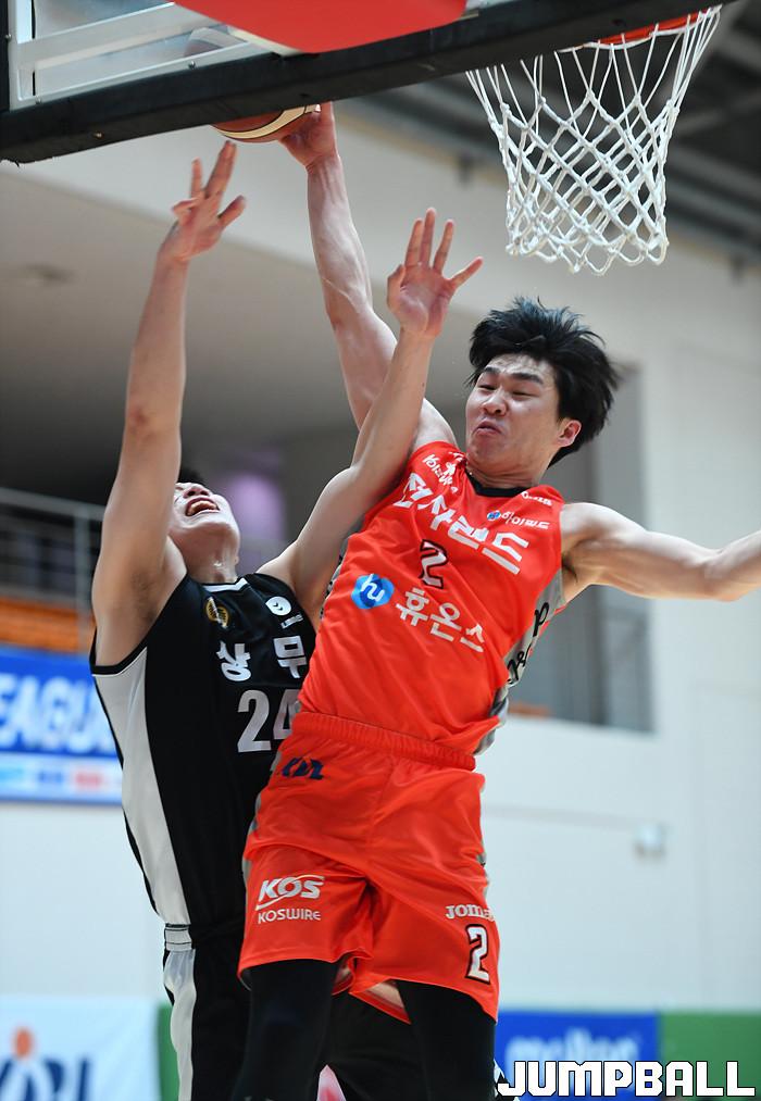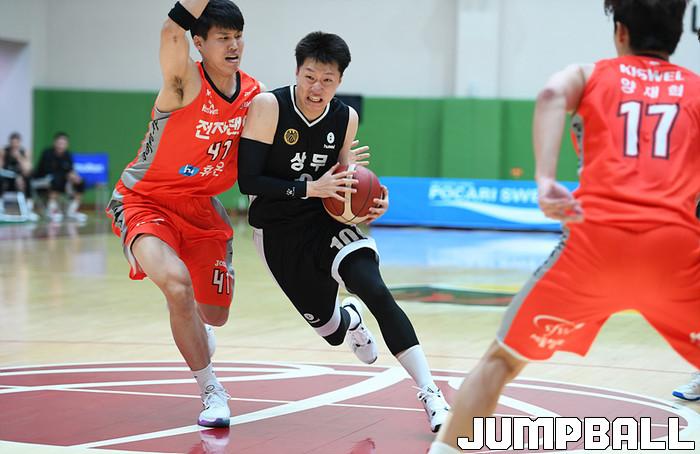 이날 상무는 정효근이 트리플더블(12득점 15리바운드 12어시스트),정성호(18득점, 3점슛 3개)와 정해원(17득점, 3점슛 5개)은 와곽포 8방을 합작했고, 김진유(13득점)도 두 자리 득점으로 승리에 기여했다.