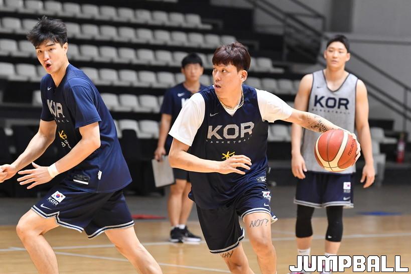 남자 농구 대표팀은 11일 인도네시아 자카르타 GBK 바스켓볼 홀에서 공식 볼 훈련을 가졌다. 대표팀 최준용이 김종규와 같이 2대2 플레이를 연습하고 있다.