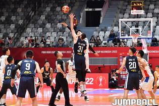 14일 인도네시아 자카르타 이스토라 세네얀에서 열린 FIBA 아시아컵 B조 대한민국과 대만의 경기. 대표팀 이우석이 벤치에서 허웅의 득점을 환호하고 있다.