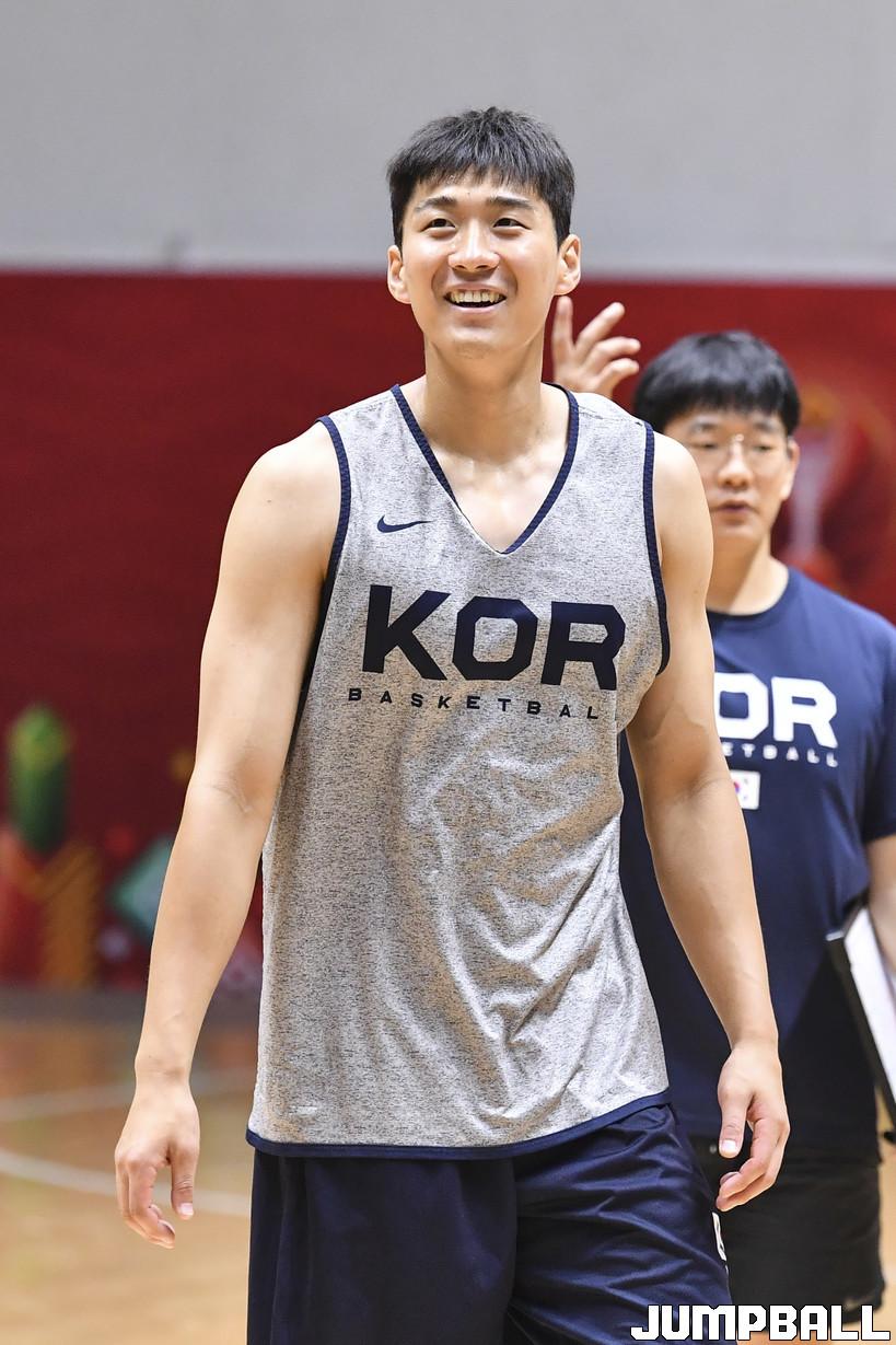 남자 농구 대표팀은 11일 인도네시아 자카르타 GBK 바스켓볼 홀에서 공식 볼 훈련을 가졌다. 대표팀 양홍석이 연습 훈련에서 3점슛 득점후 활짝 웃고 있다.