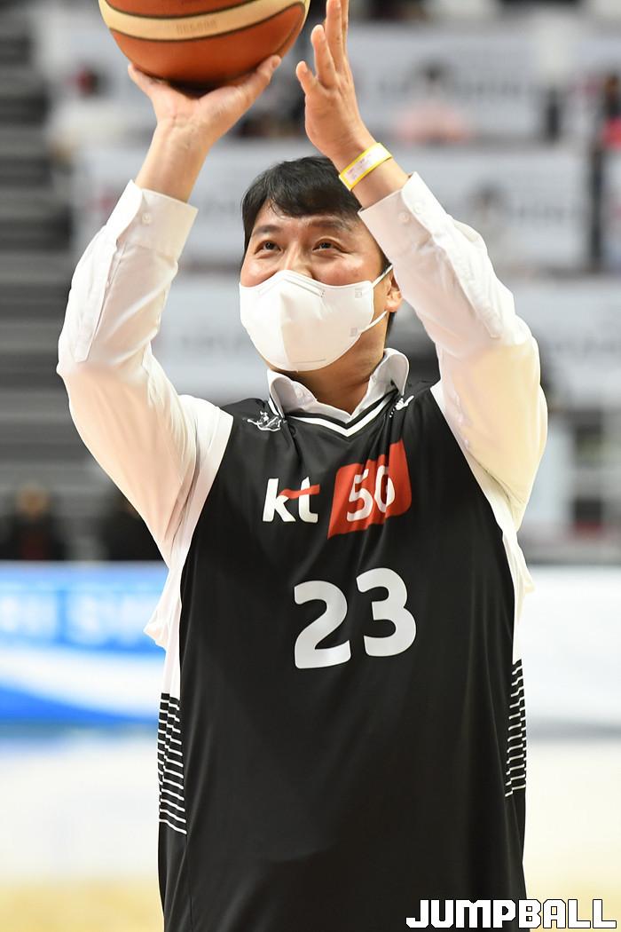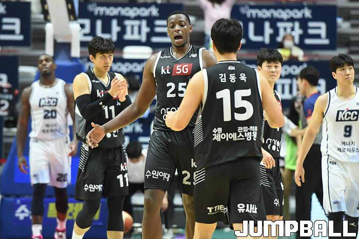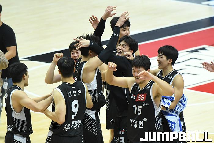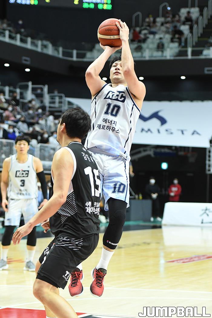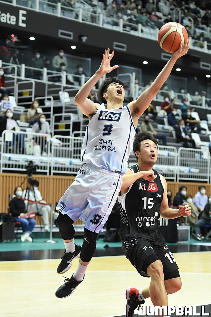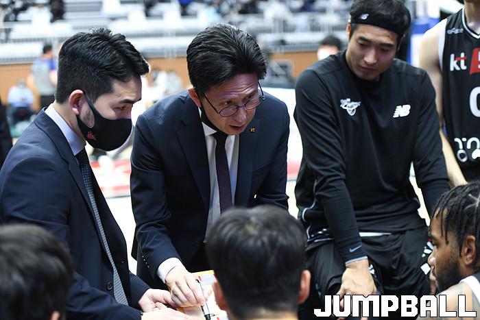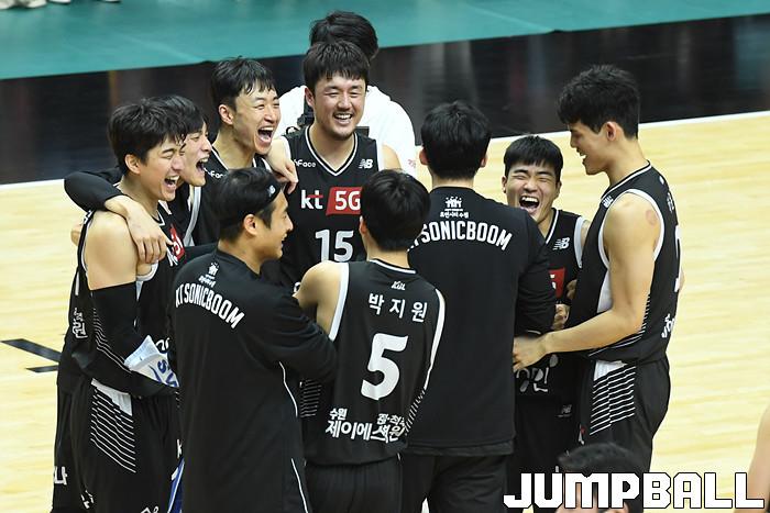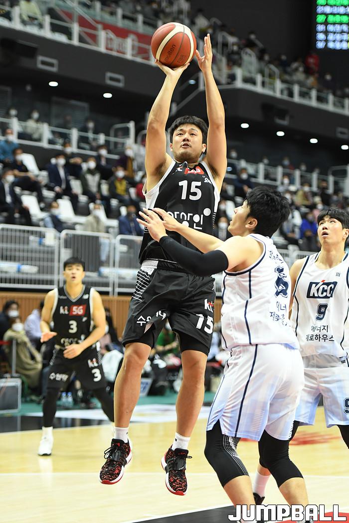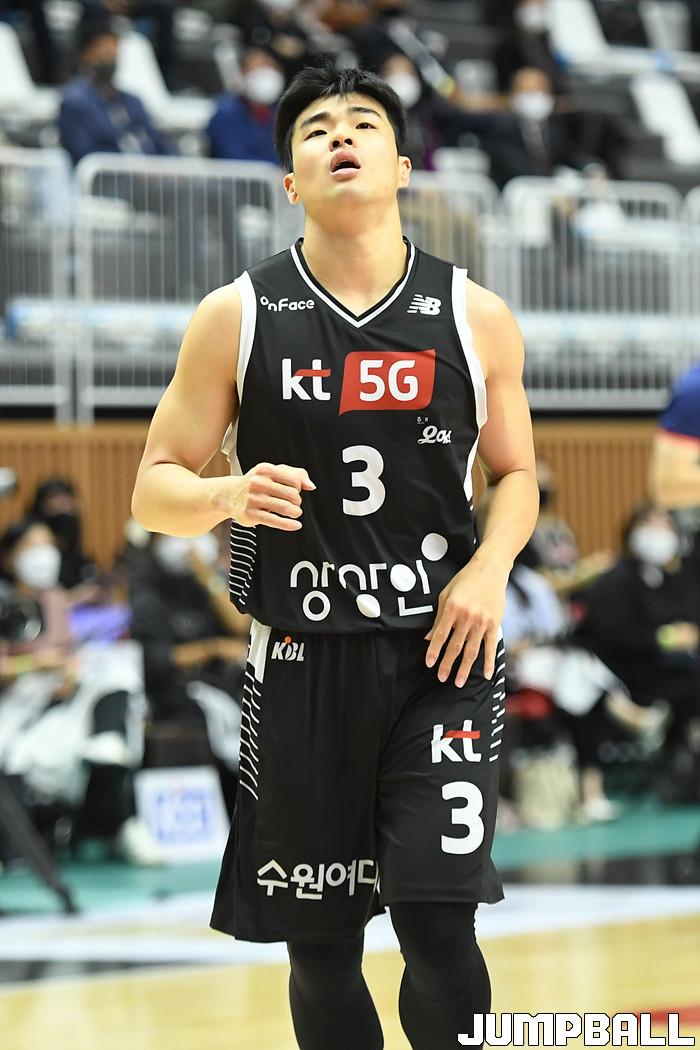 7일 경기도 수원에 위치한 KT 소닉붐 아레나에서 열린 2021-2022 KGC인삼공사 정관장 프로농구 수원 KT와 전주 KCC의 경기, KT가 홈에서 KCC에 80-79로 승리했다. KT와 KCC 경기 화보