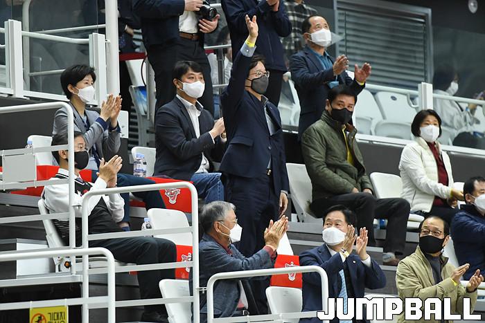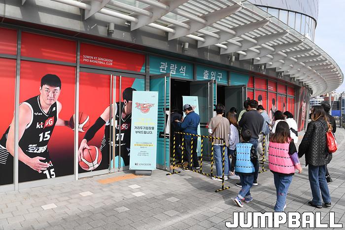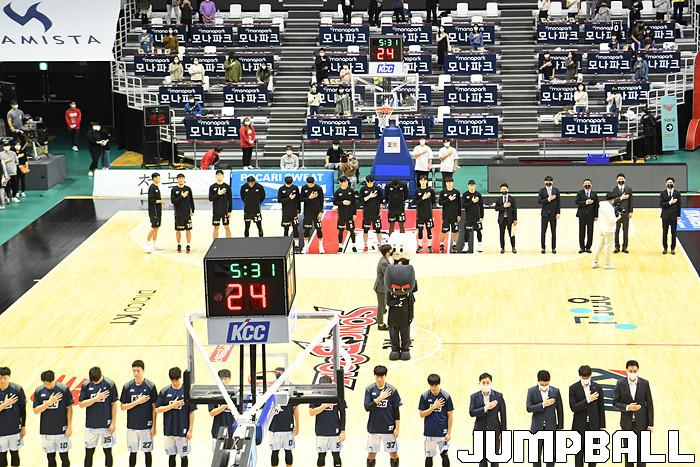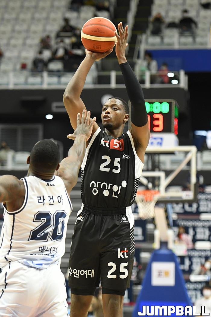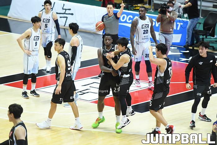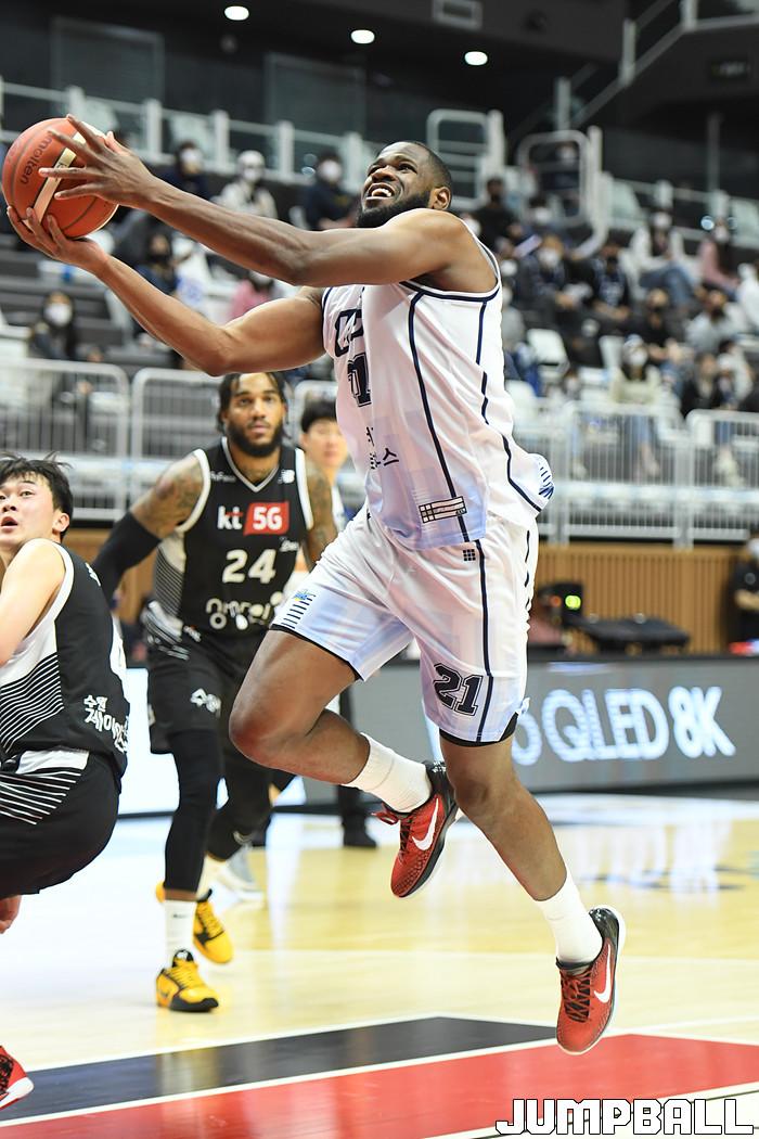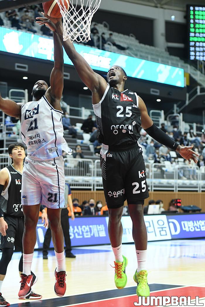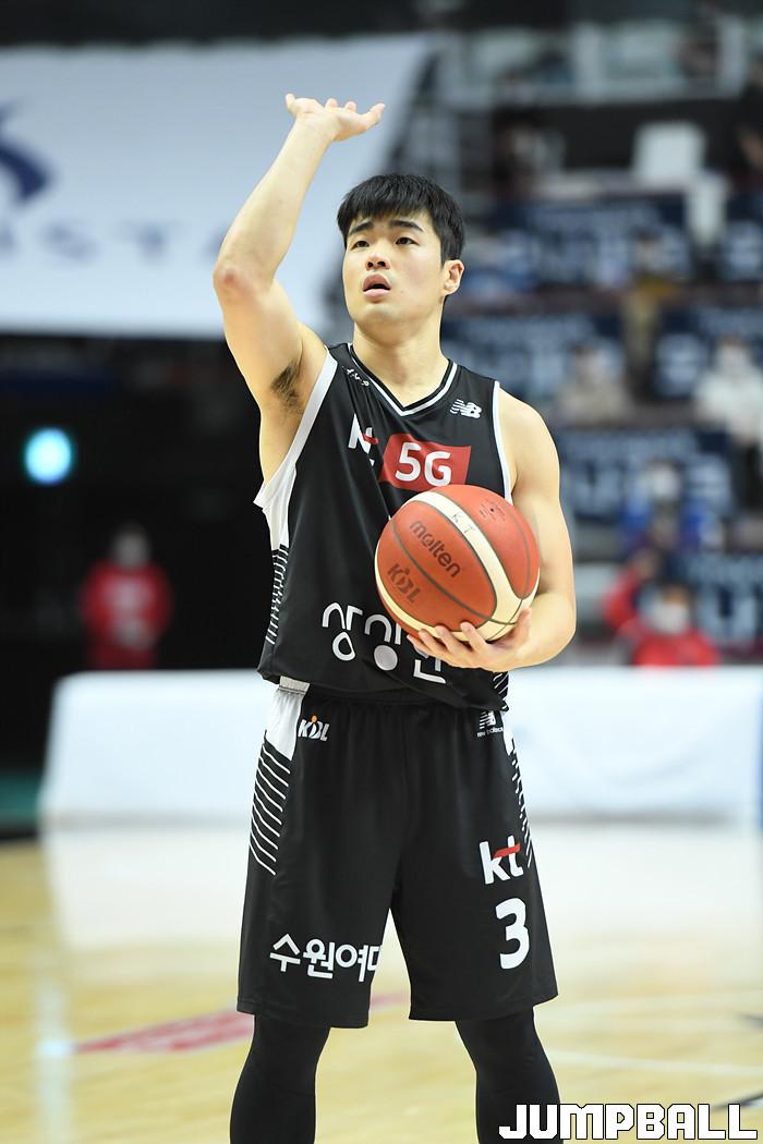 7일 경기도 수원에 위치한 KT 소닉붐 아레나에서 열린 2021-2022 KGC인삼공사 정관장 프로농구 수원 KT와 전주 KCC의 경기, KT가 홈에서 KCC에 80-79로 승리했다. KT와 KCC 경기 화보