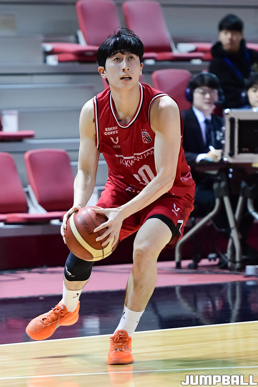 안양 정관장 소준혁은 6일 경희대 국제캠퍼스 선승관에서 열린 2025-2026 KBL D리그 원주 DB와의 경기에서 14점 3점슛 4개를 기록, 정관장의 87-81 승리에 힘을 보탰다.