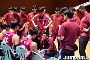 3일 경희대 국제캠퍼스 선승관에서 열린 2022 KUSF 대학농구 U-리그 경희대와 한양대의 경기, 경희대 김현국 감독이 작전을 지시하고 있다.