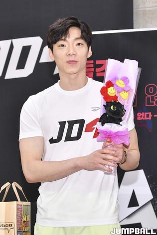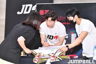 27일 서울 서교동 인아우트 코트에서 열린 프로스펙스 JD4 이재도 팬미팅. 이재도가 팬미팅에 참여한 팬들에게 유니폼에 사인해주고 있다.