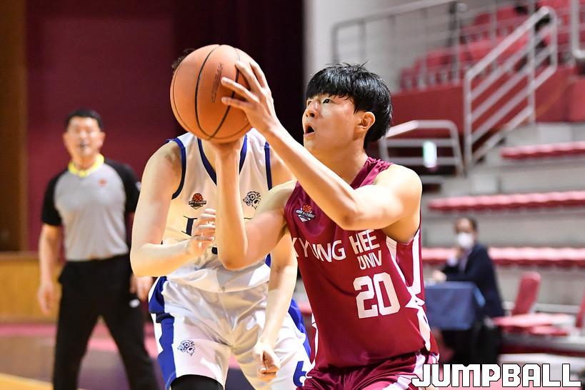 3일 경희대 국제캠퍼스 선승관에서 열린 2022 KUSF 대학농구 U-리그 경희대와 한양대의 경기, 경희대 우상현이 림을 바라보고 슛을 시도하고 있다.